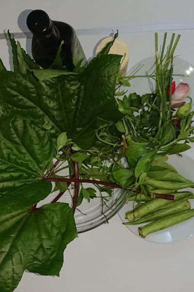 - Laver et découper vos herbages et gombos, oignon pays et persil